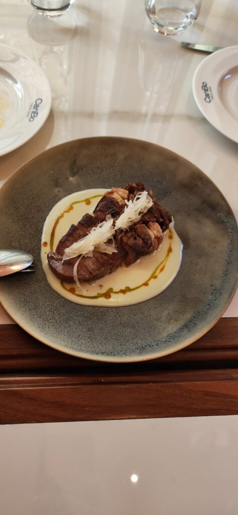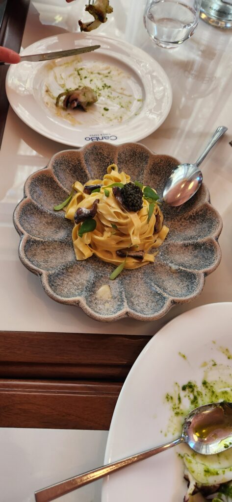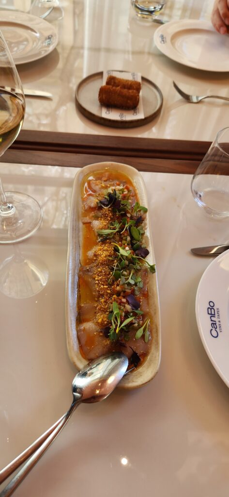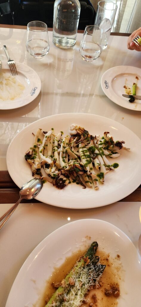 We had several meals today ranging in price and even went to a Michelin guide restaurant. At the Michilen restaurant, the kids requested asparagus, we also had pasta in a butter lemon sauce with anchovies and caviar, beef tongue, fish carpaccio, a red prawn rice dish, cuttlefish, and she croquettes. Meals for 5 ranged from 11 euros upwards of 200 euros and the cheap meals were just as good as the expensive ones. We  spent the day eating some amazing food and we managed to be out and about for 22 hours today. My energy levels throughout the day seemed to be fine, but it is clear that i need the wheelchair. Within the cathedral I had to go a period without it going upstairs and moving about. It was clear that the whole process exhausted me greatly and I had to take breaks. I ended up taking some energy chews. While I can move around and do things, the energy depletion is quite real and I need to increase my caloric intake before I can stop relying on the wheelchair. I kept my steps below 2000 while Olivier had over 15,000. Xavier has his numbers skewed because he was pushing the wheelchair for most of the day and it impacts his arm swings. By the end of the day as the temperatures dropped, we realized that I had a problem. My hands get very cold with my thin gloves and they seize up painfully and I can not move them. We knew that this can occur, but thought it would be ok here. It is not. We have some contingency plans for tomorrow and luckily i have hand warmers in my jacket pocket. I had difficulty getting them out so I had my sister help me out. We will try and find either gloves or a blanket for tomorrow to help out with this.